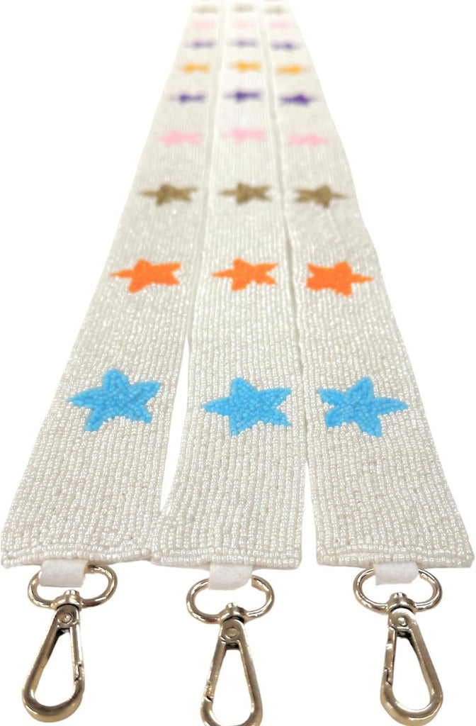 Beaded Purse Strap with Stars Multi Colors Rainbow | 49” Long Concert Outfit for Clear Bags College Gameday Swift Gold Clips