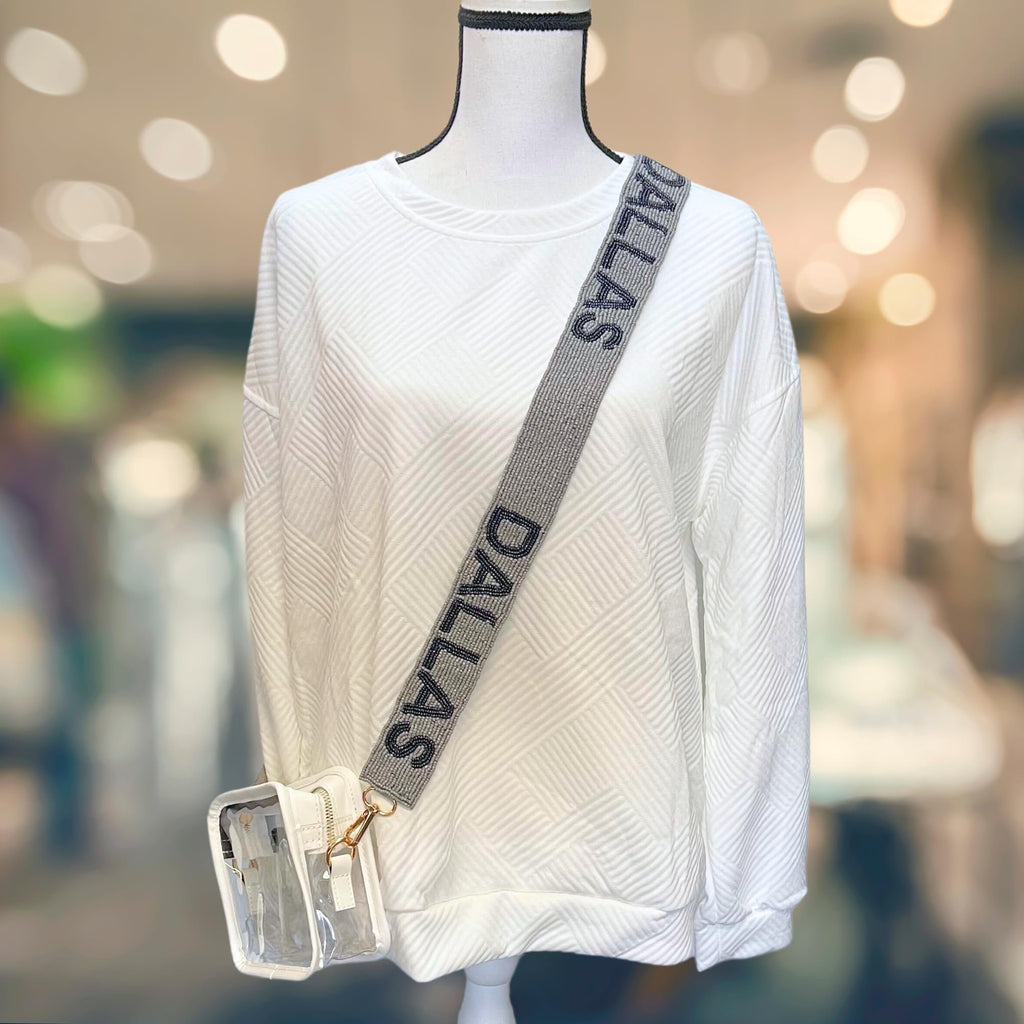The Dallas Beaded Purse Strap (49 inches with gold hardware) is the perfect accessory to add a touch of sophistication and style to your bag collection. Featuring a chic gray and blue beaded purse strap, this hand-beaded design combines cool tones that make it a standout accessory for Dallas game day or any occasion where you want to show off your team spirit with elegance. The gold hardware gives the strap a luxurious finish, making it a versatile option for clear purses or crossbody bags. Whether you’re heading to a college football game or out for a casual day, this beaded purse strap is the perfect way to elevate your look.