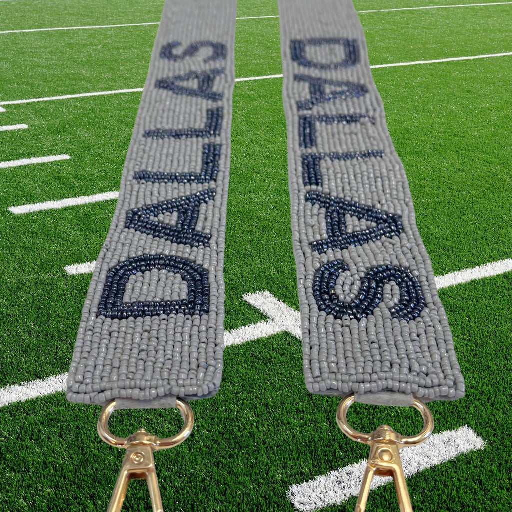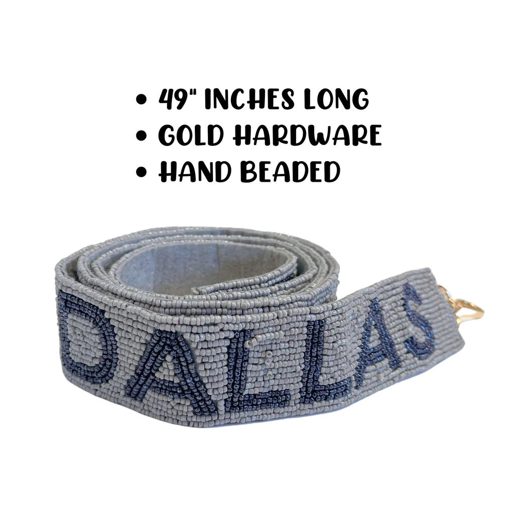Chic Gray and Blue Beaded Design: Handcrafted with a stunning blend of gray and blue beads, this purse strap brings a sophisticated, modern aesthetic to any bag, making it the perfect accessory for Dallas game days or stylish everyday wear.