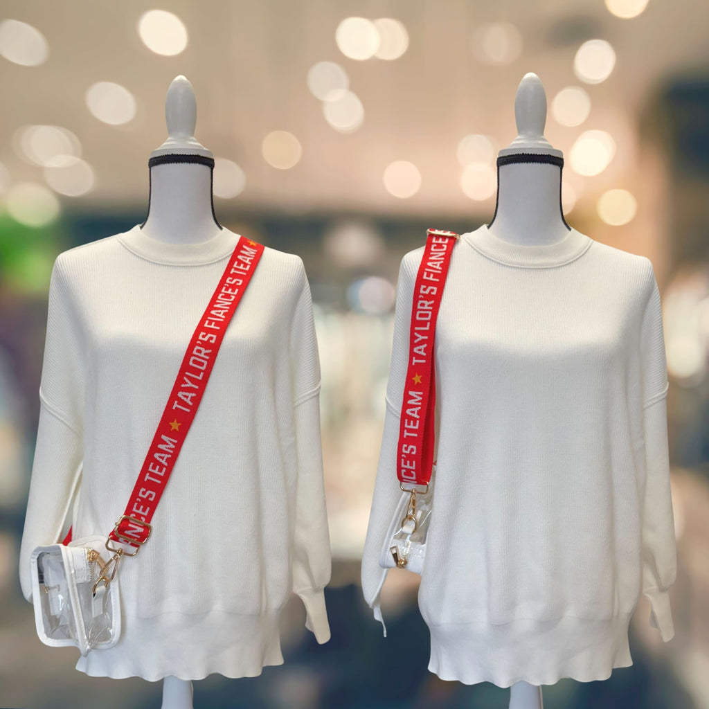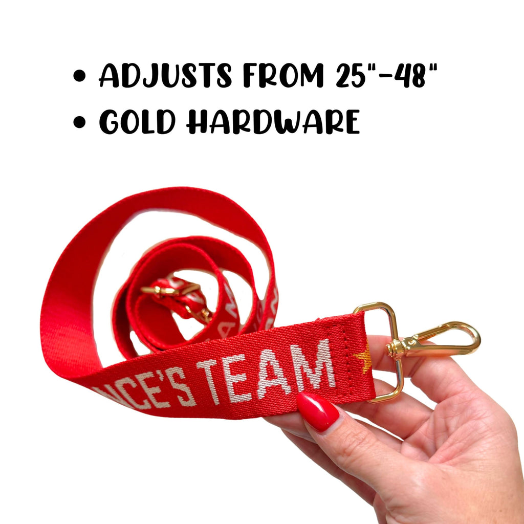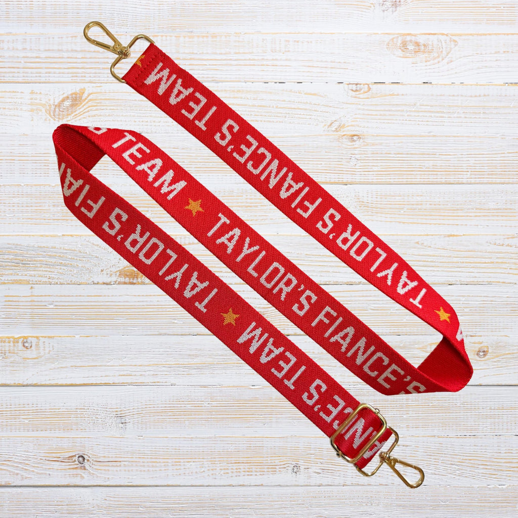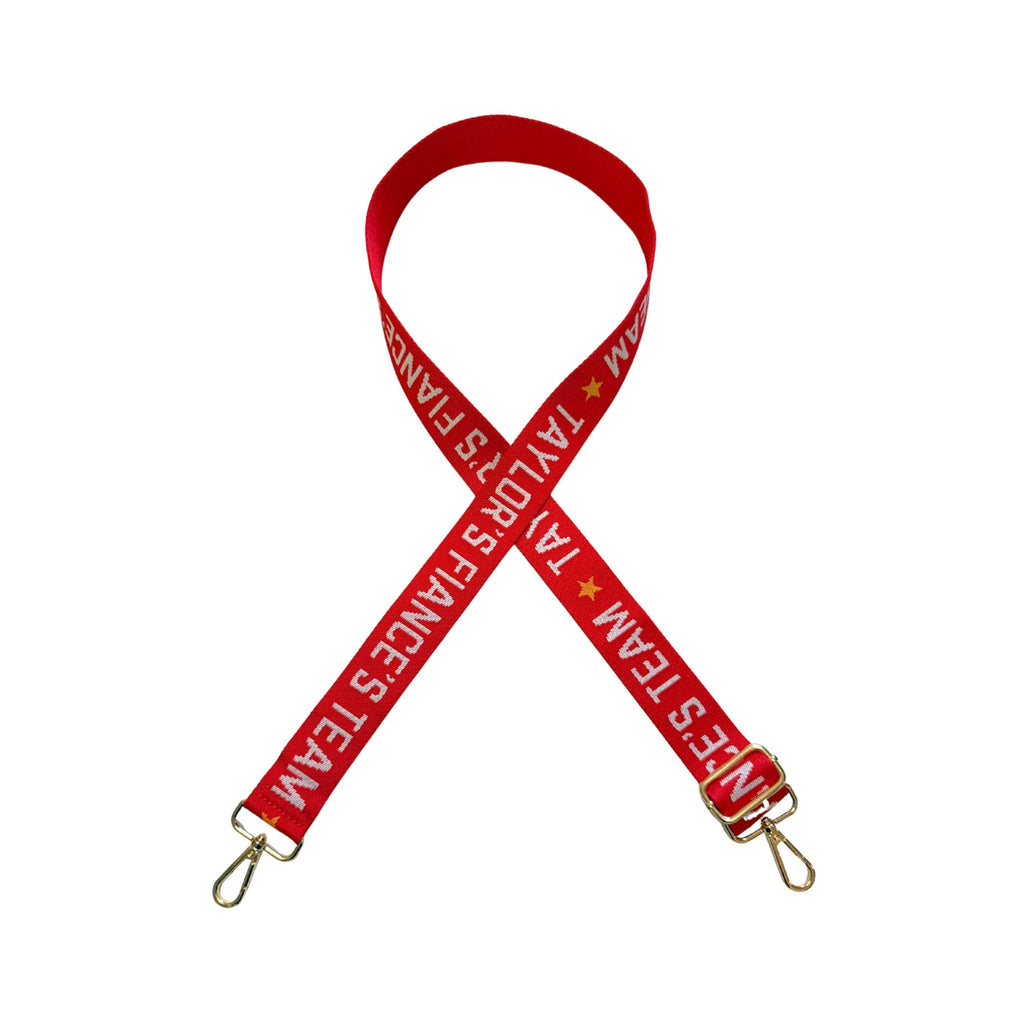 Add a bold, spirited touch to your favorite bag with this Red & Gold Adjustable Woven Purse Strap, featuring vibrant white lettering for a standout, eye-catching look. Designed with both fashion and function in mind, this 1.5-inch-wide strap is perfect for game days, tailgates, or adding a football flair to your everyday style. Crafted from durable woven materials, this strap is built to last and features adjustable gold hardware, allowing you to customize the length from 25 inches to 48 inches—ideal for wearing crossbody or over the shoulder. The red base combined with bright white letters creates a striking contrast that enhances any clear bag, crossbody, or coin purse. Perfect for football fans, alumni events, or anyone who loves bold, personalized accessories, this strap easily clips onto most bags for a quick and stylish upgrade. It also makes a thoughtful gift for her—trendy, functional, and easy to pair with a variety of purse styles. Whether you’re stocking your boutique or refreshing your personal collection, this adjustable woven purse strap is a versatile and must-have accessory for anyone who wants to show off their school spirit or personal style with flair.djustable Gold Hardware: Includes polished gold hardware that allows length customization from 25” to 48” for comfortable crossbody or shoulder wear.Bold, Collegiate Design: Features a red background with vibrant white lettering and golden yellow stars for a standout, spirited look that adds team pride to any bag.Durable Woven Material: Made from strong, high-quality woven fabric designed for long-lasting use while maintaining vibrant colors.Universal Bag Compatibility: Easy-to-clip clasps fit most bags, including clear bags, crossbodies, and coin purses, allowing quick style upgrades.Superior Quality: Crafted with meticulous attention to detail, woven strap for purse boasts exceptional quality, ensuring durability and longevity. The sturdy construction and premium materials guarantee that it can withstand game day use without compromising its stunning appearance. Incredible gift for her or anyone needing some cute game day accessories for Monday night, Sunday, or Thursday night game designs.