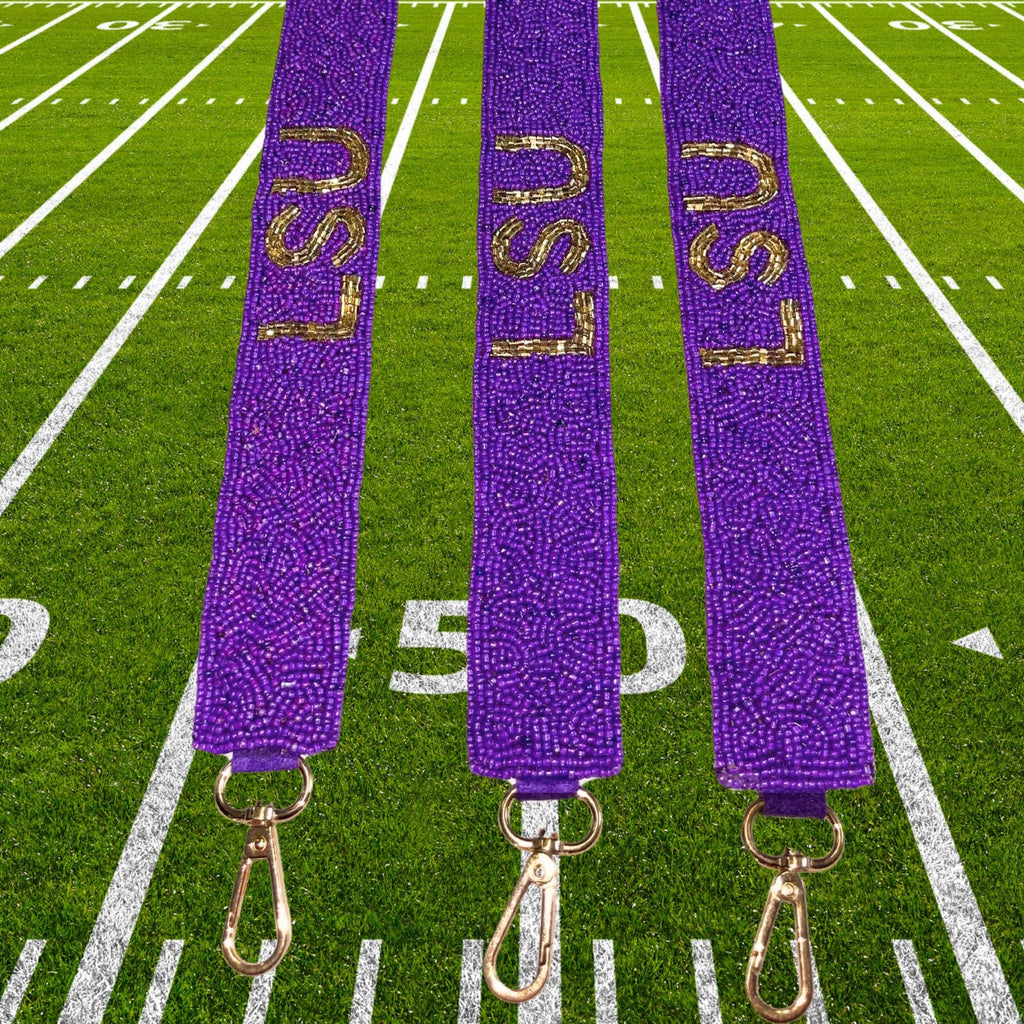 Crafted with the fan in mind, our beaded purse strap Game Day collection features this exquisite beaded purse strap crossbody Game Day piece, ideal for pairing with your geaux shirt or enhancing your collection of geaux earrings. Whether you're supporting your team at a game or seeking a unique beaded purses strap for women, our beaded game day purse straps are the perfect choice. This beaded purse strap crossbody combines functionality with style, making it a great addition to your Game Day DIY projects or types of purse straps collection.