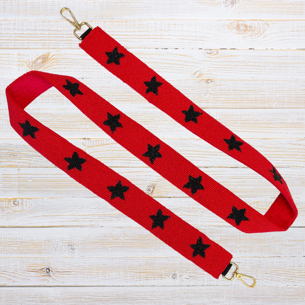 The Red Purse Strap with Black Stars is a striking accessory that combines bold color and eye-catching design to elevate any handbag or purse. This beaded purse strap features vivid red beads adorned with contrasting black stars, making it the perfect addition to any fashion-forward collection. Whether you're preparing for a game day or simply looking to add a pop of style to your bag, this red purse strap is ideal. It’s also a fantastic choice for those seeking unique red gameday merchandise or a school cheer beaded game day strap to show off team spirit with flair. Crafted with practicality in mind, this purse strap with gold clasps offers both elegance and versatility. The adjustable bag strap for purses allows you to effortlessly convert it from a handbag strap to a crossbody strap, ensuring comfort and convenience throughout the day. It’s perfect for a diy purse strap project or as a replacement purse strap for your favorite bag. Whether paired with a red handbag, gold buckle handbag, or even a red leather purse strap, the gold clasps add a sophisticated touch, enhancing the overall look. The red and black star beaded strap is also a great addition to any handmade purse strap collection or red guitar straps, offering a fun twist to your accessories. It pairs wonderfully with a compartment purse or shoulder strap for a phone case, and makes a standout piece in your handbag accessories collection. For DIY enthusiasts, this strap is perfect for diy lanyard making, especially when complemented with a red keychain or lanyard with black stars. The strap’s bold design also makes it a great accessory for star jewelry, such as a red stars bracelet or star purse straps, adding a personalized touch to your style. Ideal for gifting or updating your own accessories, this red purse strap with black stars makes a fun and stylish accessory gift that will surely stand out. Whether you’re looking to add a touch of personality to your favorite bag or gift it to someone special, this strap offers endless possibilities for both fashion and functionality. Bold Red & Black Beaded Design: This striking 49” purse strap features vivid red beads paired with contrasting black stars, making it a standout accessory that adds a pop of style to any handbag or purse. Perfect for Game Day & Team Spirit: Whether you're preparing for a game day or showing off your team spirit, this red and black star strap is an excellent choice for fans looking to add flair to their red-themed or school cheer accessories. Adjustable and Versatile: The adjustable length allows you to easily convert the strap from a traditional handbag handle to a comfortable crossbody or shoulder strap, offering versatility and practicality for everyday wear. Durable with Elegant Gold Clasps: Crafted with sturdy gold clasps, this purse strap provides both durability and sophistication, making it a perfect combination of style and function. Ideal for DIY Projects & Customization: Perfect for DIY enthusiasts, this strap can be used for creating custom lanyards, handmade purse straps, or even star-themed jewelry like bracelets, offering endless possibilities for personalization. Great Gift Idea for Any Occasion: Whether you're treating yourself or gifting it to someone special, the Red Purse Strap with Black Stars is a fun and stylish accessory that makes a unique and thoughtful gift for birthdays, holidays, or any occasion.
